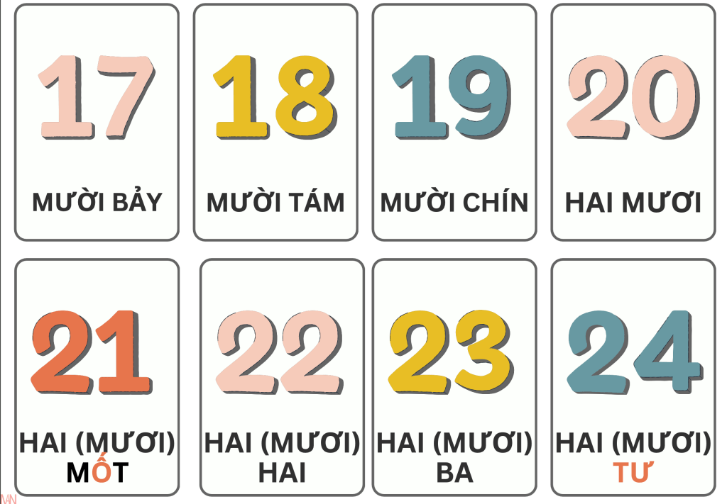 The number 4 (bốn) changes to “tư” from 24 onwards